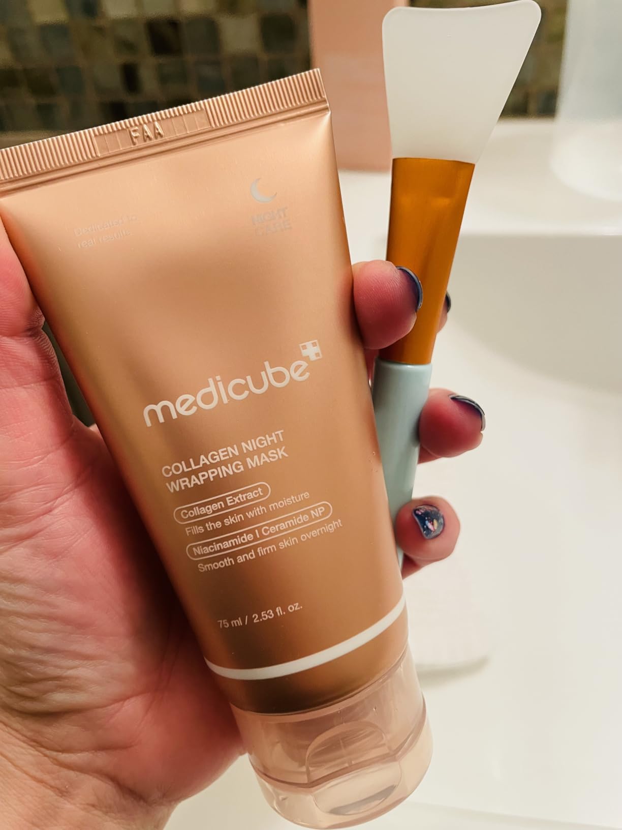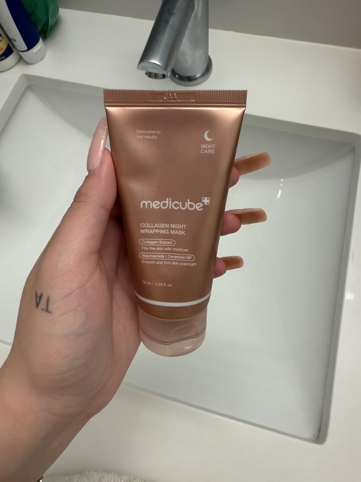 Bôi tối trước khi ngủ, sáng dậy rửa mặt da vẫn còn mềm mướt. Mới xài dc có 1 lần mà da căng bóng