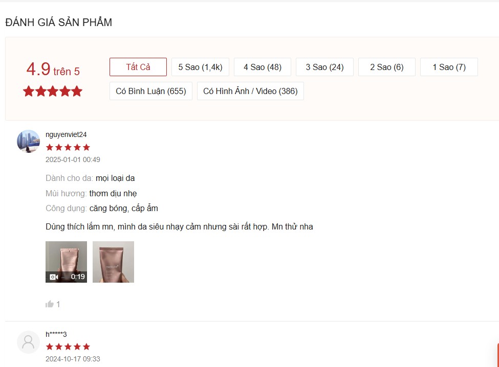 sp tốt, da đc cấp ẩm mịn màng, giap hàng nhanh, giá hơi cao 4 sao thôi nhé