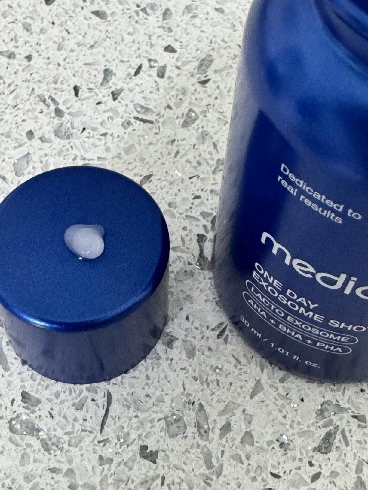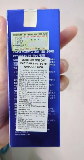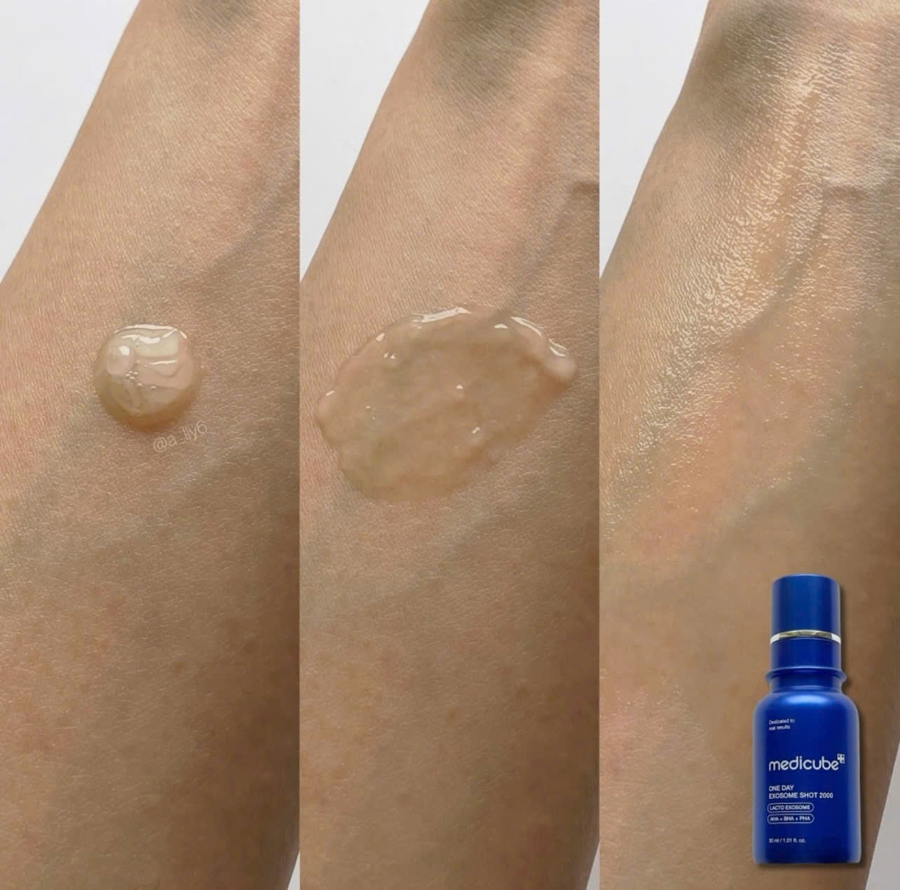 Kết quả 100% từ một nghiên cứu sử dụng của người tiêu dùng Sự hài lòng chung về sản phẩm. Phản hồi tích cực từ cuộc khảo sát 20 người, với sự khác biệt của từng cá nhân. Được thử nghiệm bởi Viện Khoa học Da liễu Toàn cầu. Thời gian thử nghiệm: 24 tháng 8 năm 2022 - 21 tháng 9 năm 2022. Hấp thụ các hoạt chất Hấp thụ hoạt chất trong mỹ phẩm so với sử dụng đơn lẻ: 242% Tác dụng chăm sóc lỗ chân lông Cải thiện mật độ lỗ chân lông: 21,1% Giảm khả năng hiển thị lỗ chân lông: 21,1% Diện tích lỗ chân lông: 15,3% Thể tích lỗ rỗng: 16,7% Các cải tiến về da khác Cải thiện tế bào da chết: 88,7% Tăng cường độ rạng rỡ: 51,7% Cải thiện bã nhờn: 8,9% Tăng cường hydrat hóa bề mặt: 7,6% Tinh chỉnh kết cấu: 4,1% Tăng cường hàng rào bảo vệ da: 54,2% Chăm sóc khối lượng dòng:10,4% Cải thiện sắc tố Melanin: 7.4% Chăm sóc tàn nhang, vết thâm: 4,8% * Trích từ Báo cáo và khảo sát thử nghiệm Exosome Shot của Medicube, Kết quả có thể thay đổi tuỳ từng cá nhân và thời điểm