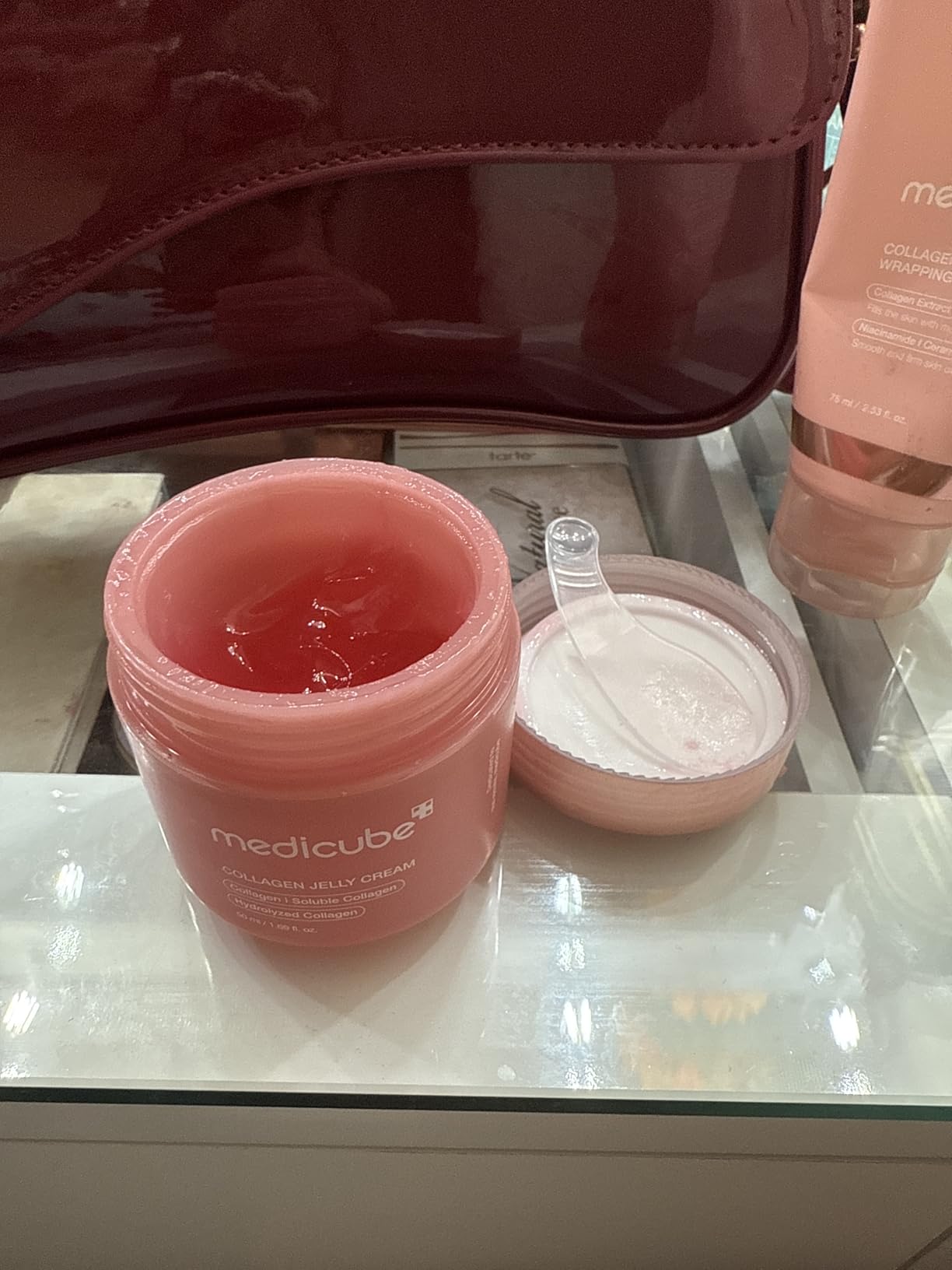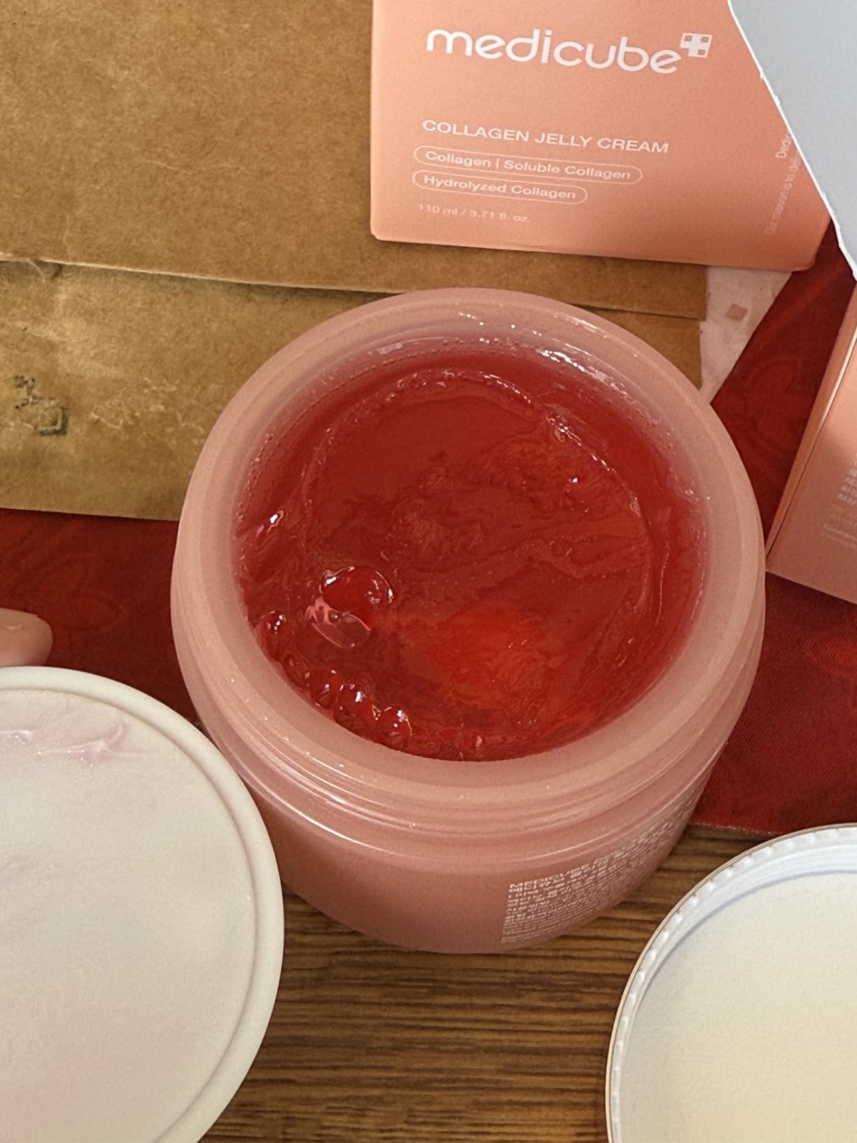 Cái chất thạch collagen này trộm vía hợp da combo, acne prone. Dòng nào của medicube cũng tốt. Bây giờ tui sẽ kể sự tích đi lướt shoppe, thích cái gì là mua, mua sao phải có coupon, rồi đủ 50 chữ nhe. Tiếp. Học makeup là phải mua đồ. Làm con gái phải chăm da, chăm mặt