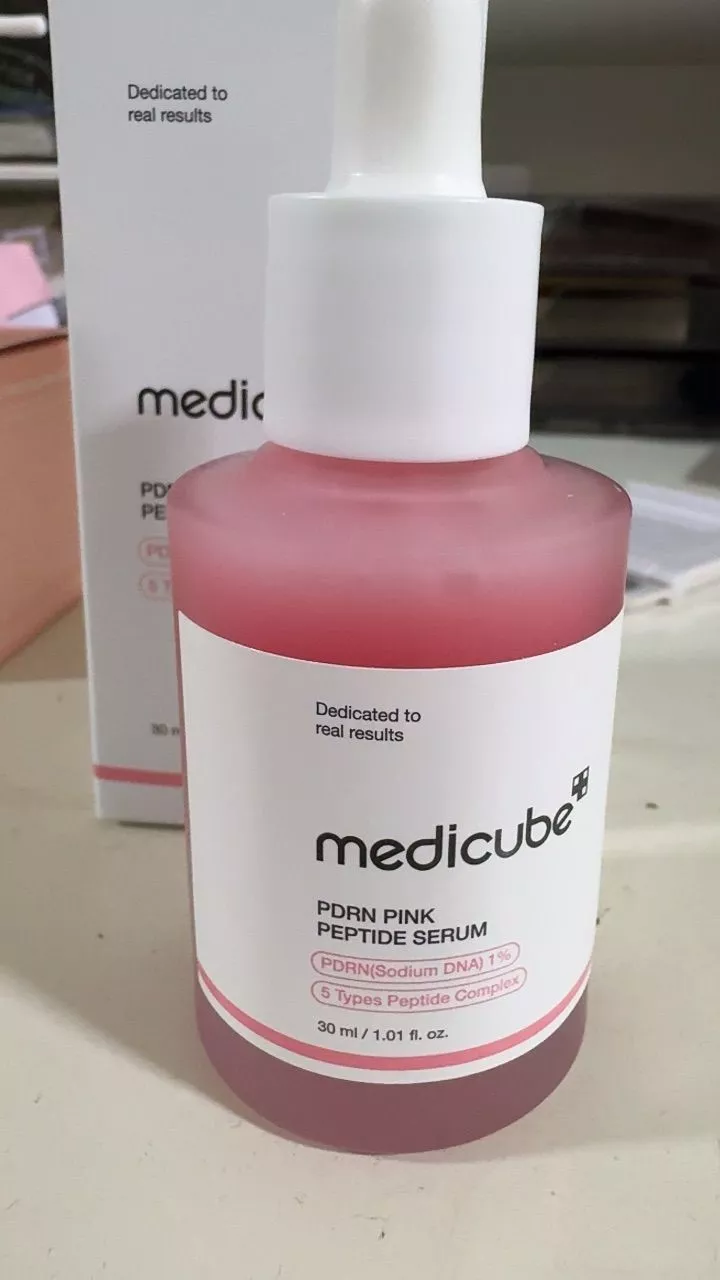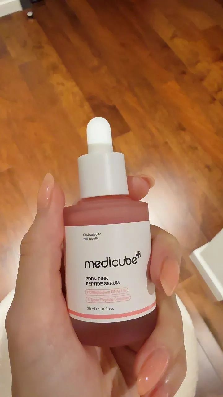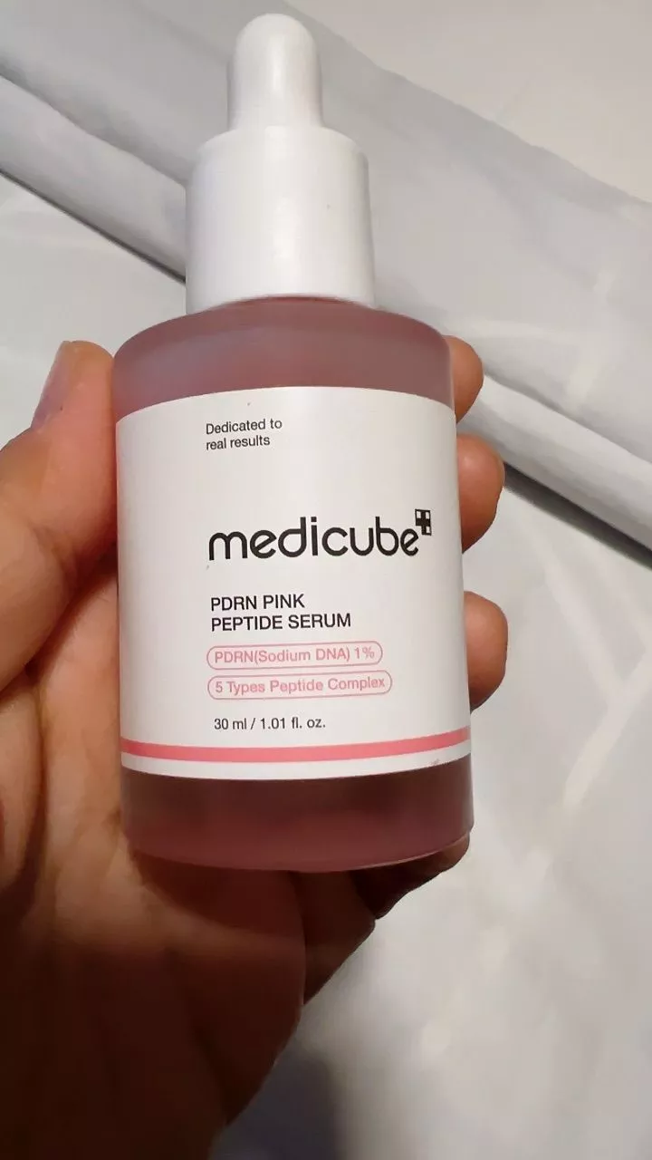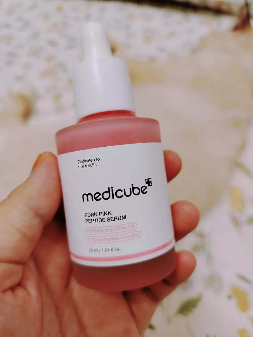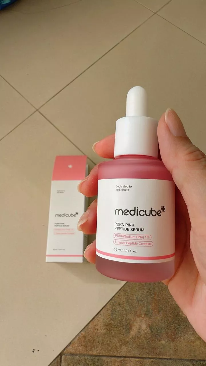 Mỗi ngày mình dùng Medicube Pink Peptide Serum vào buổi tối sau khi rửa mặt và toner. Chất serum mỏng nhẹ, có màu hồng nhạt nhìn rất thích. Da mình trước đây hơi xỉn màu và khô, nhưng sau 1 thời gian dùng thì cải thiện rõ. Giữ ẩm tốt, sáng da, không gây mụn ẩn. Da có độ căng bóng nhẹ, cảm giác khoẻ hơn. Rất hài lòng với hiệu quả.