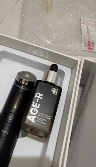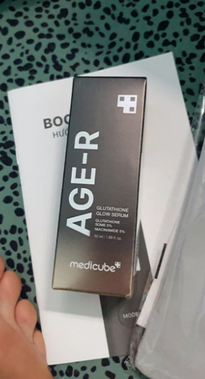 1. Serum sáng da, mờ sắc tố & trẻ hoá da độc quyền AGE-R Texture tối ưu phù hợp với Booster-H Sáng da, không gây khô da Da được ngậm đầy nước, rạng rỡ suốt 24 giờ 2.Thành phần chính làm sáng da, mờ sắc tố Làm sáng da với Công nghệ Active Glow-zom Glutathione some (50.000ppm), Niacinamide 5%, Adenosine, Phân tử Collagen gần giống da đã được cấp bằng sáng chế, Lysate lên men Bifida 3. Chăm sóc tăng cường và làm sáng da Giúp làm mờ vết thâm/đốm/sắc tố và mang lại vẻ rạng rỡ cho làn da Làm đầy rõ rệt vết chân chim, nếp nhăn ở môi và nếp nhăn trên trán 4. Hiệu quả mà vẫn dịu nhẹ để sử dụng hàng ngày AGE-R Glutathione Glow Ampoule được kiểm nghiệm là ít gây kích ứng thông qua thử nghiệm bằng miếng dán trên da